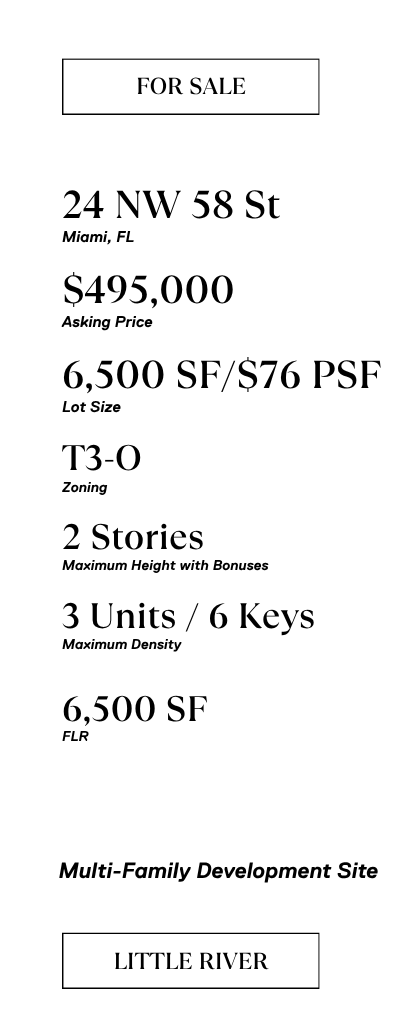 Metro 1 Commercial QOZB LLC is pleased to exclusively present for sale the property located at 24 NW 58 Street, Miami, FL ("The Property.")
